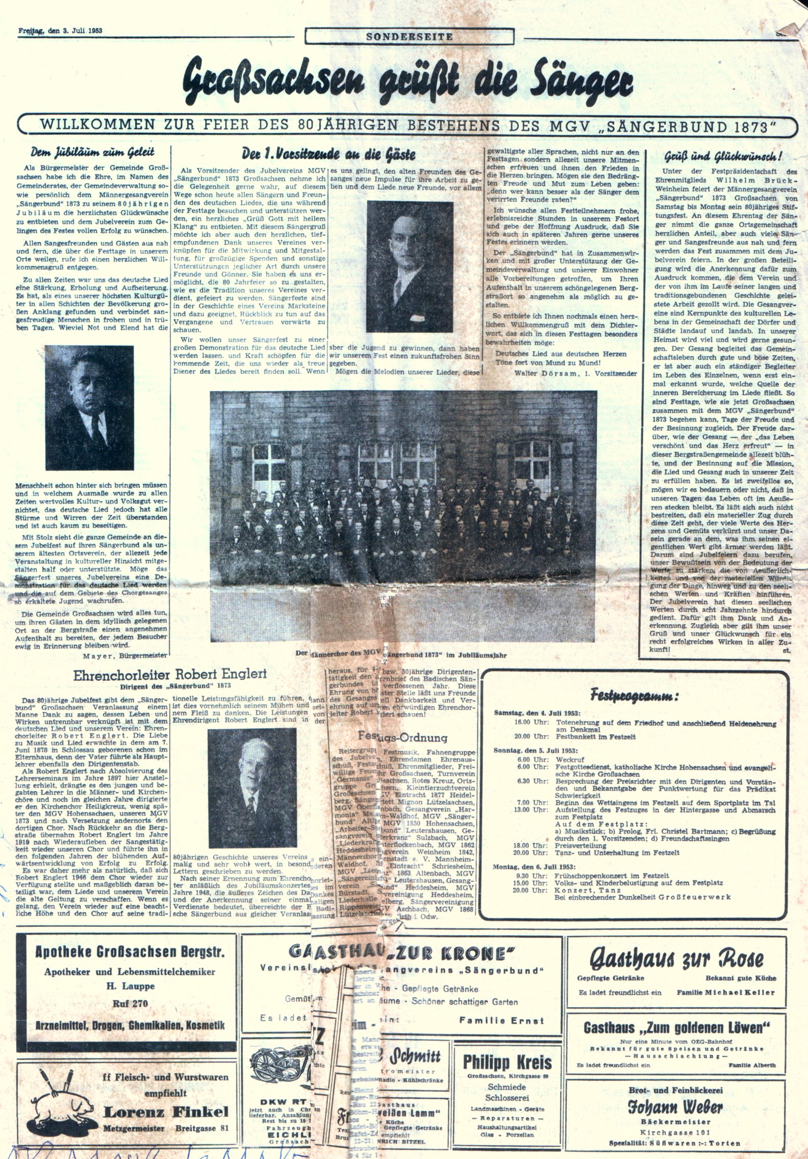 des MGV "Sängerbund" 1873 Großsachsen